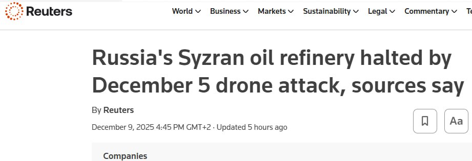 Собеседники сообщили, что дроны повредили установку первичной переработки нефти CDU-6 – ключевое оборудование, которое уже подвергалось атакам дронов в августе и требовало двухнедельного ремонта.