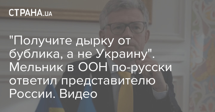 Постоянный представитель Украины в ООН Андрей Мельник по-русски обратился к российской делегации, заявив, что Россия получит "дырку от бублика".