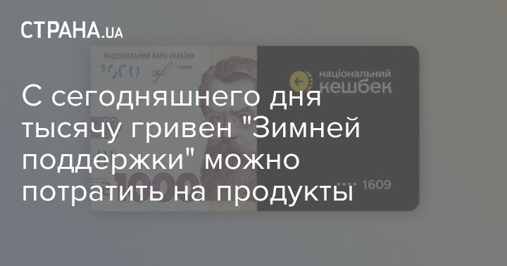 Начиная с 11 декабря 1 000 гривен помощи в рамках программы "Зимняя поддержка" можно тратить на продовольственные товары украинского производства, кроме подакцизных, рассчитываясь картой "Национальный кэшбек".