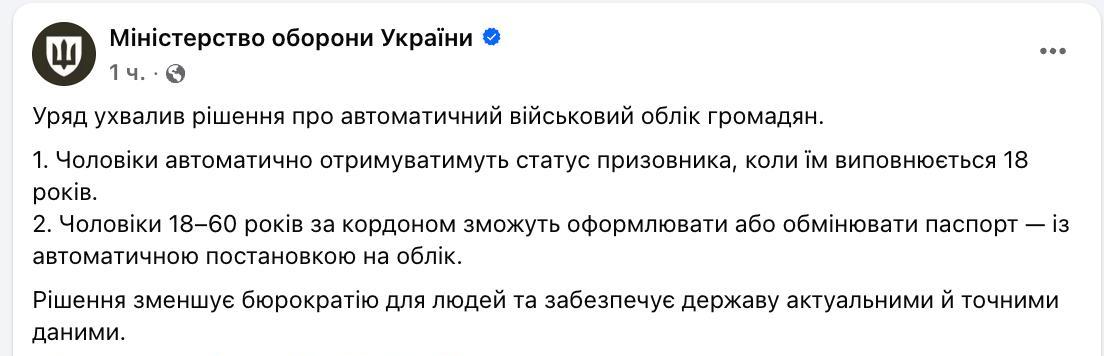 Такое постановление принял Кабинет министров, сообщает Минобороны Украины на своей странице в Фейсбуке.
