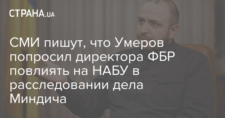 СМИ пишут, что Умеров попросил директора ФБР повлиять на НАБУ в расследовании дела Миндича