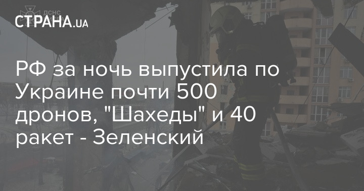 РФ за ночь выпустила по Украине почти 500 дронов, "Шахеды" и 40 ракет - Зеленский