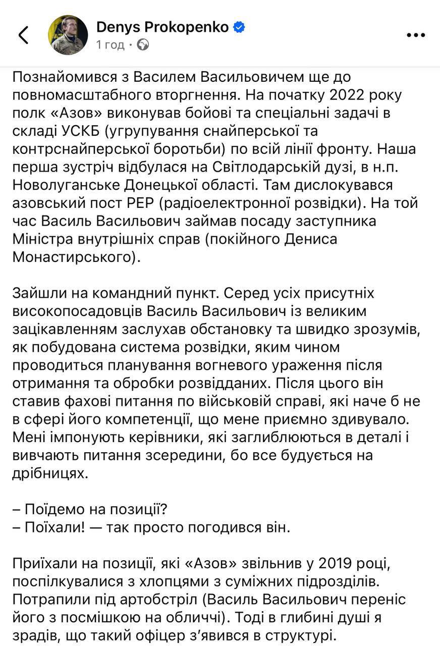 "Малюк - именно там, где должен быть: СБУ под его руководством оказывает ощутимое влияние на устойчивость нашей обороны. Результаты этой работы ощутимы как на поле боя, так и в тылу. Кроме того, своей личной безопасностью я также обязан Василию Малюку и его команде", - заявил Драпатый.