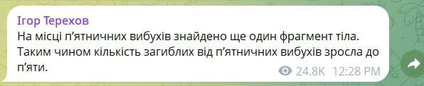 14:08 Количество жертв после пятничных взрывов в центре Харькове возросло до 5, сообщает мэр города Терехов. Ещё 27 человек получили ранения.