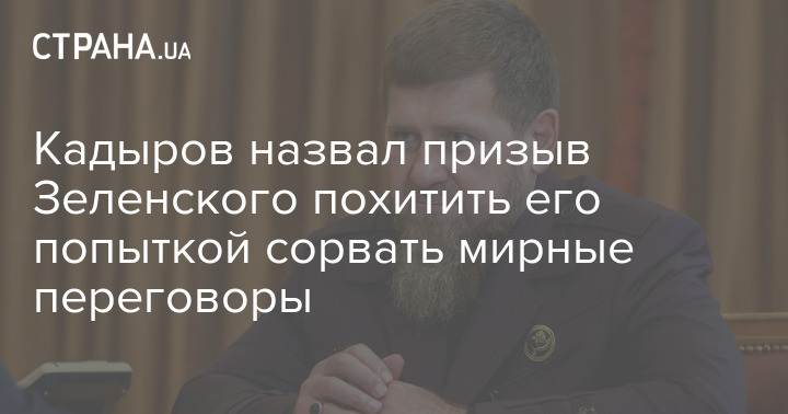 Глава Чечни Рамзан Кадыров считает, что призыв Владимира Зеленского к американцам похитить его, как они поступили с Николасом Мадуро, подтверждает попытки украинской власти "сорвать мирное урегулирование".