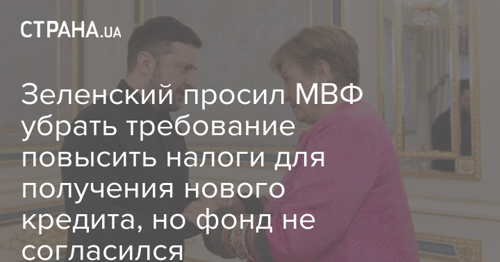 В Киеве прошли переговоры президента Украины Владимира Зеленского и главой МВФ Кристалины Георгиевой. На них фонд продолжил настаивать на повышении налогов как предварительном условии выделения нового кредита, хотя президент и пытался убедить Георгиеву снять это требование.
