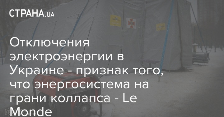 Сегодняшние отключения электроэнергии в Украине являются одним из признаков того, что энергосистема страны находится на грани полного коллапса.