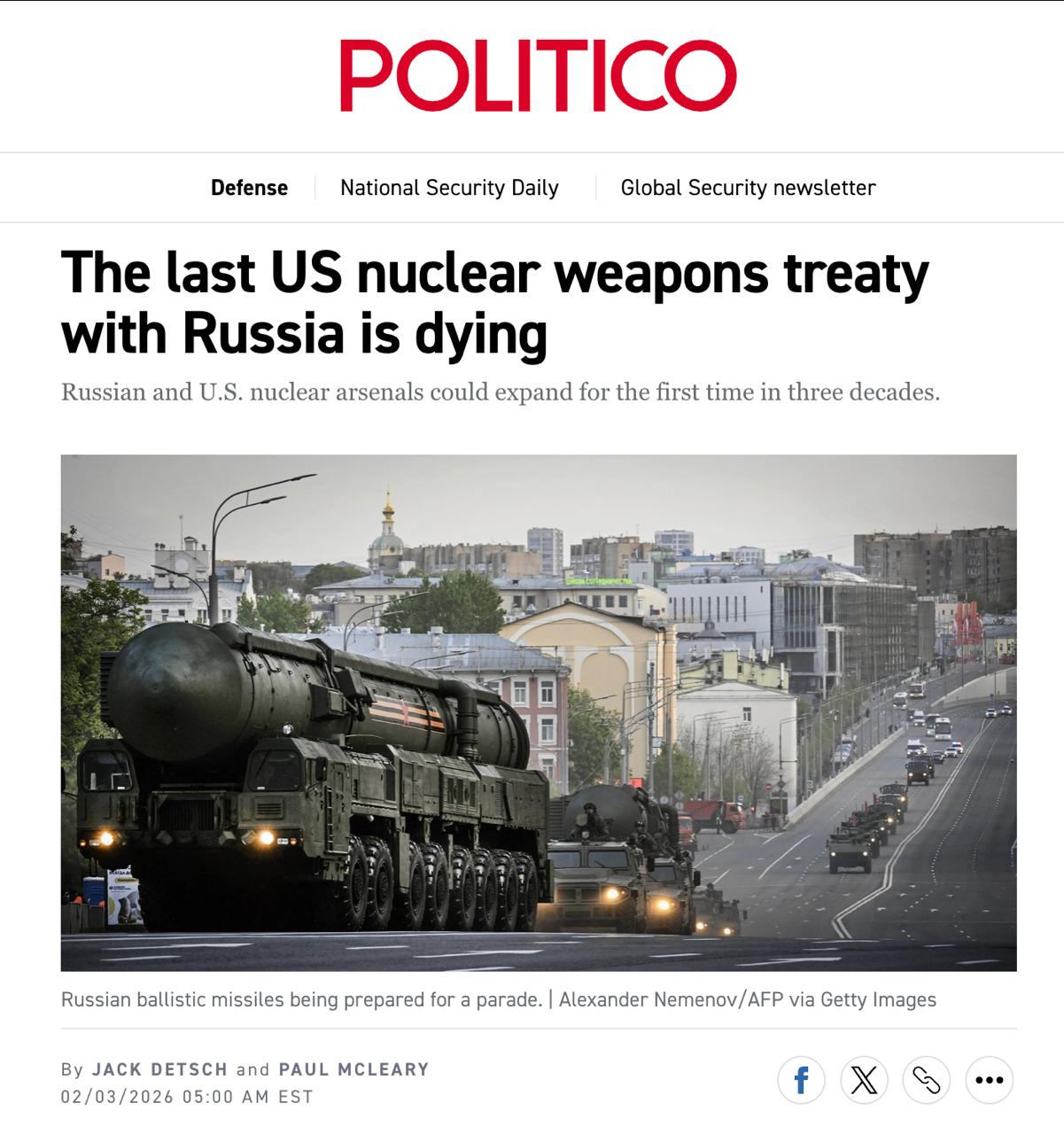 Истечение срока действия договора СНВ-3 ознаменует собой первый случай за почти 40 лет, со времен администрации Рональда Рейгана, когда у США не будет договора о контроле над ядерным оружием с Россией. Пентагону, возможно, придётся в спешке искать новые способы противодействия наращиванию военной мощи России и Китая. И американские союзники тоже могут вмешаться, хотя и не в сотрудничестве с США.