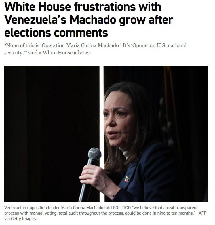 "Она эгоистка". В Белом доме усиливается разочарование в лидере венесуэльской оппозиции Мачадо - Politico