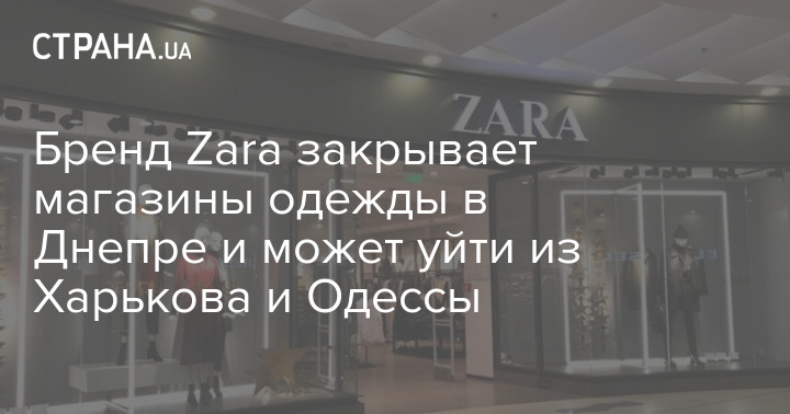 Новостной портал сообщает, что испанский владелец бренда одежды, компания Inditex, которая развивает Zara и еще шесть брендов, разорвала договоры аренды с торговыми центрами "Мост-Сити" и "Караван" в Днепре.