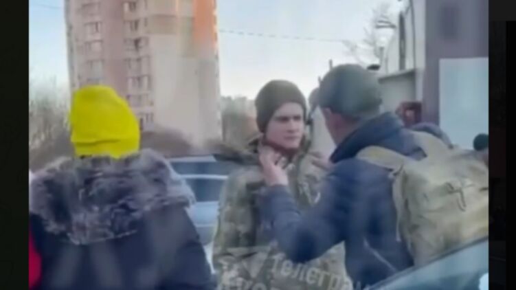 Сообщается, что молодой человек в камуфляжной форме проводил уличную мобилизацию в составе группы оповещения. Но когда микроавтобус ТЦК уезжал с задержанным, его не успели забрать.