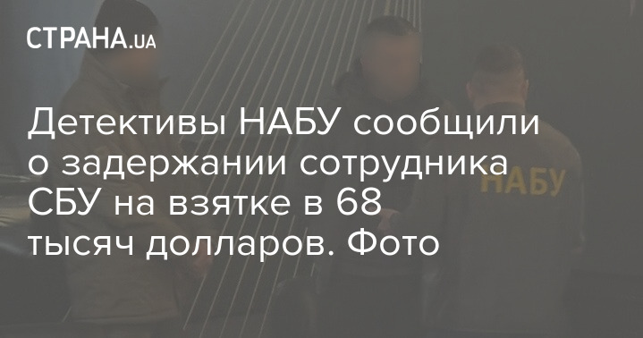 Национальное антикоррупционное бюро Украины (НАБУ) задержало сотрудника Службы безопасности Украины (СБУ) на получении 68 тысяч долларов взятки.