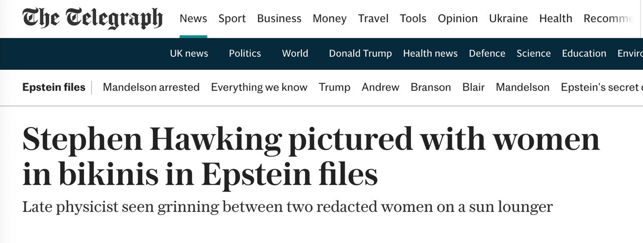 Хокинг упомянут в "файлах Эпштейна" 250 раз, ранее он появлялся и на других фотографиях на острове осужденного педофила, в том числе на барбекю в марте 2006 года, а также во время морской прогулки и экскурсии на подводной лодке с неопознанной блондинкой.