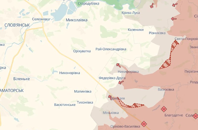 Тревожным моментом для ВСУ Машовец называет продвижение российских подразделений к рубежу Ильинка–Бересток к югу от Константиновки. Отдельные штурмовые группы смогли закрепиться в Ильинке и выйти к окраинам Константиновки со стороны Покровска.