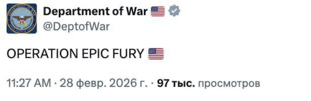 10:44 Пентагон назвал операцию против Ирана «Эпическая ярость».