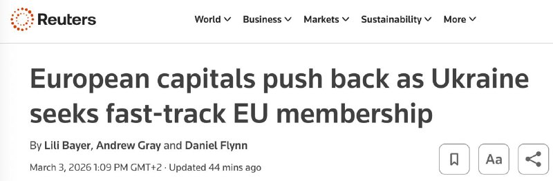 Страны Европейского Союзе жестко сопротивляются возможности ускоренного присоединения Украины. В частности, против этого выступают лидеры ЕС Франция и Германия.