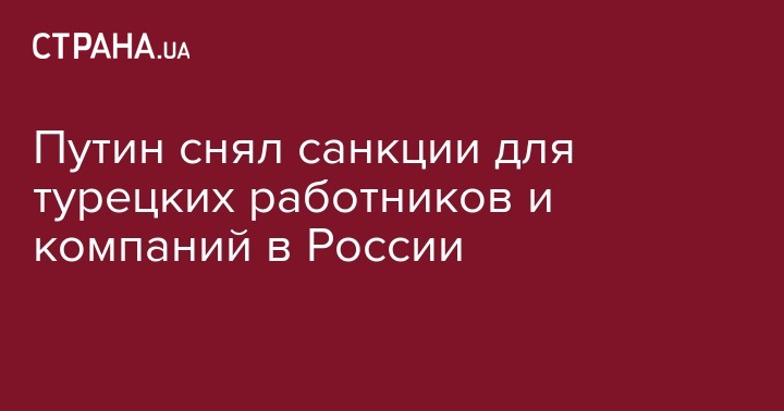Президент России Владимир Путин снял санкции, которые ограничивали возможность турецких компаний и работников из Турции работать в России. Об этом сообщает пресс-служба Кремля, передают "РИА Новости".
