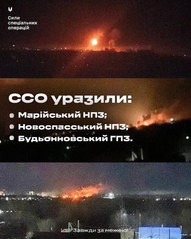 14.41 Генштаб ВСУ заявляет о поражениии трех российских нефте- и газоперерабатывающих заводов за ночь:
