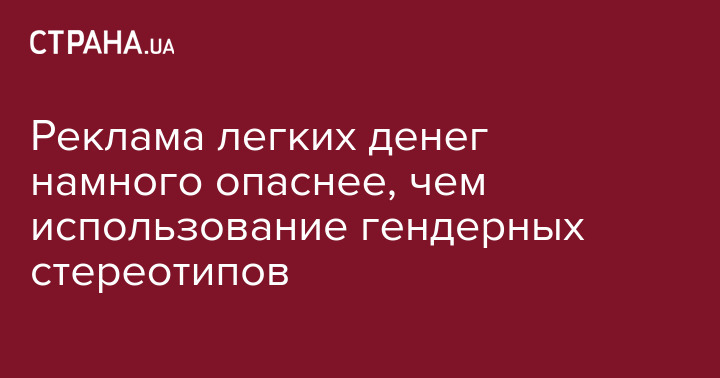 Вчора Верховна Рада ухвалила законопроект, яким забороняється зображувати у рекламній продукції частини тіла людини з натяком на сексуальні стосунки та використовувати гендерні стереотипи. Це красиво, прогресивно, навіть модно. Але у мене є зустрічне питання: а чому не забороняють рекламу легких грошей, яких можна взяти в позику. Ця реклама заполонила все телебачення, має агресивно маніпулятивний характер. По суті, це як реклама наркоти. І ця реклама є набагато більш небезпечною, ніж використовування гендерних стереотипів.