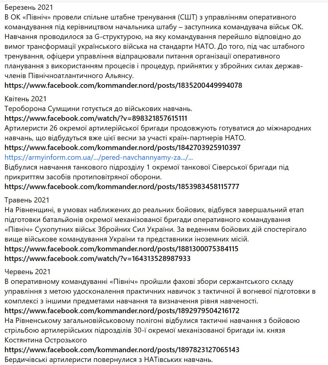 Генштаб ЗСУ підрахував, скільки навчань було проведено на півночі України напередодні російського вторгнення. Виявилося, що українські сили у 2021 році тренувалися відбивати наступ із півночі майже щомісяця.