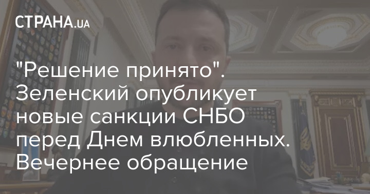 "Рішення прийнято". Зеленський опублікує нові санкції РНБО напередодні Дня закоханих. Вечірнє звернення