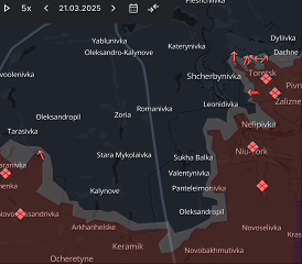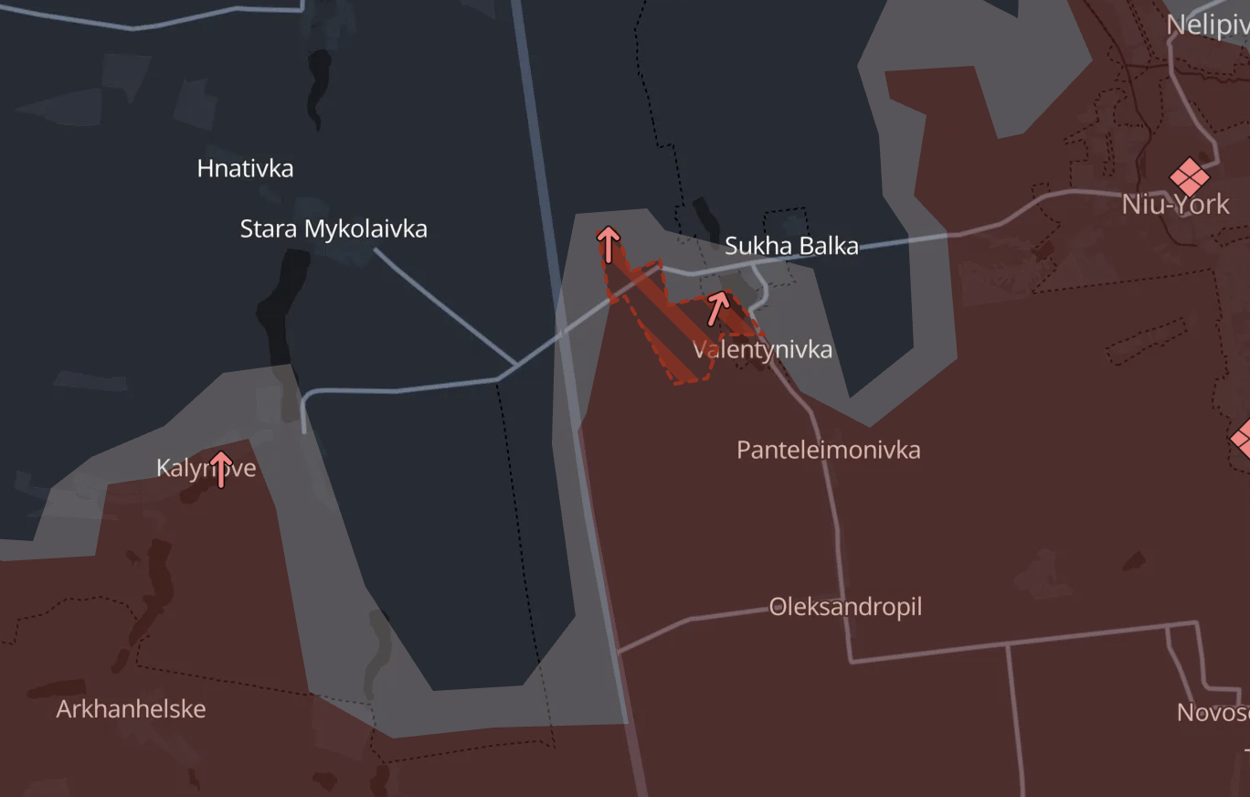 Також є просування РФ в районі Сухої Балки на південь від Торецька. Там наступ іде зі щоденним захопленням нових територій (детальніше про бої на цьому напрямі ми розповідали тут).
