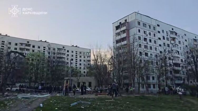Удар був по житловому кварталу та цивільному підприємству у Харкові. Пошкоджено багатоповерхові житлові будинки, навчальний заклад, легкові автомобілі.