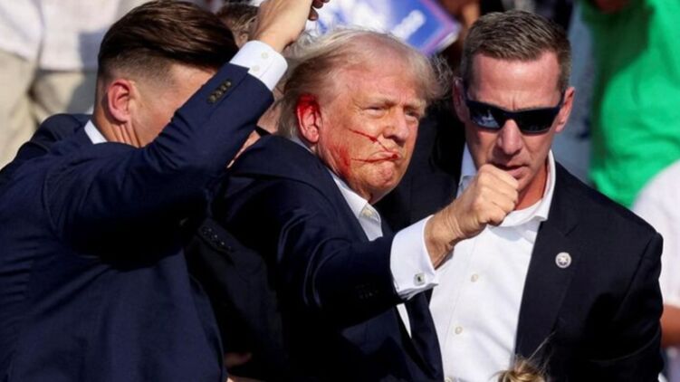 На ньому зображено відоме фото Трампа після замаху в липні 2024 року - із закривавленим обличчям та піднятим догори кулаком.