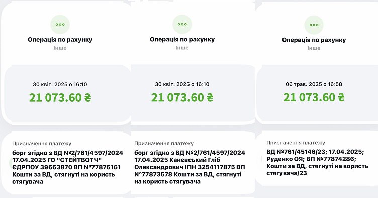 "Оскільки відповідачі добровільно не сплатили присуджених коштів, було ініційовано примусове стягнення, яке і було скоєно сьогодні", - повідомила адвокат.