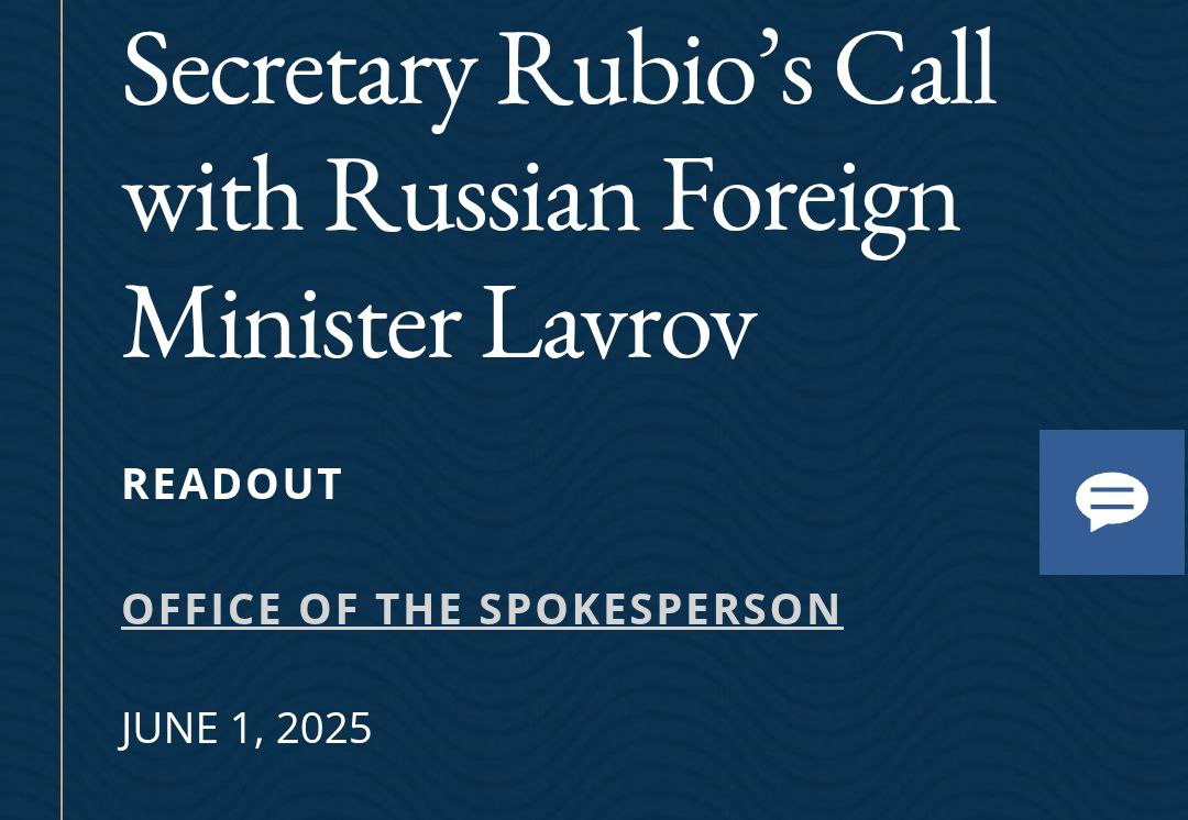 "Держсекретар Марко Рубіо на прохання Росії поговорив із міністром закордонних справ Росії Лавровим. Держсекретар Рубіо повторив заклик президента Трампа до продовження прямих переговорів між Росією та Україною для досягнення міцного миру", - йдеться у повідомленні Держдепу.