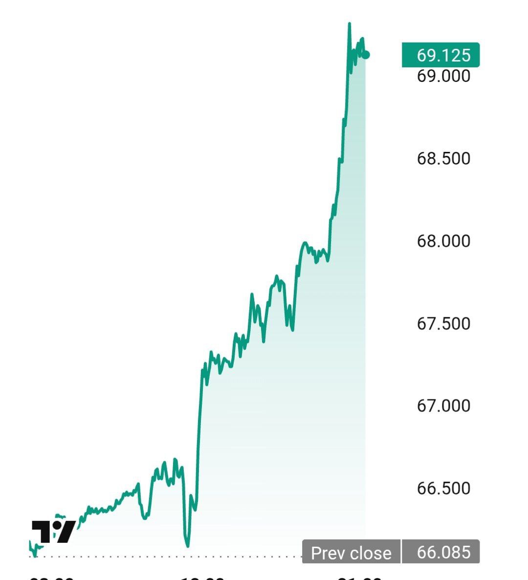 Тим часом, вартість нафти Brent зросла майже до 70 доларів через ескалацію на Близькому Сході.