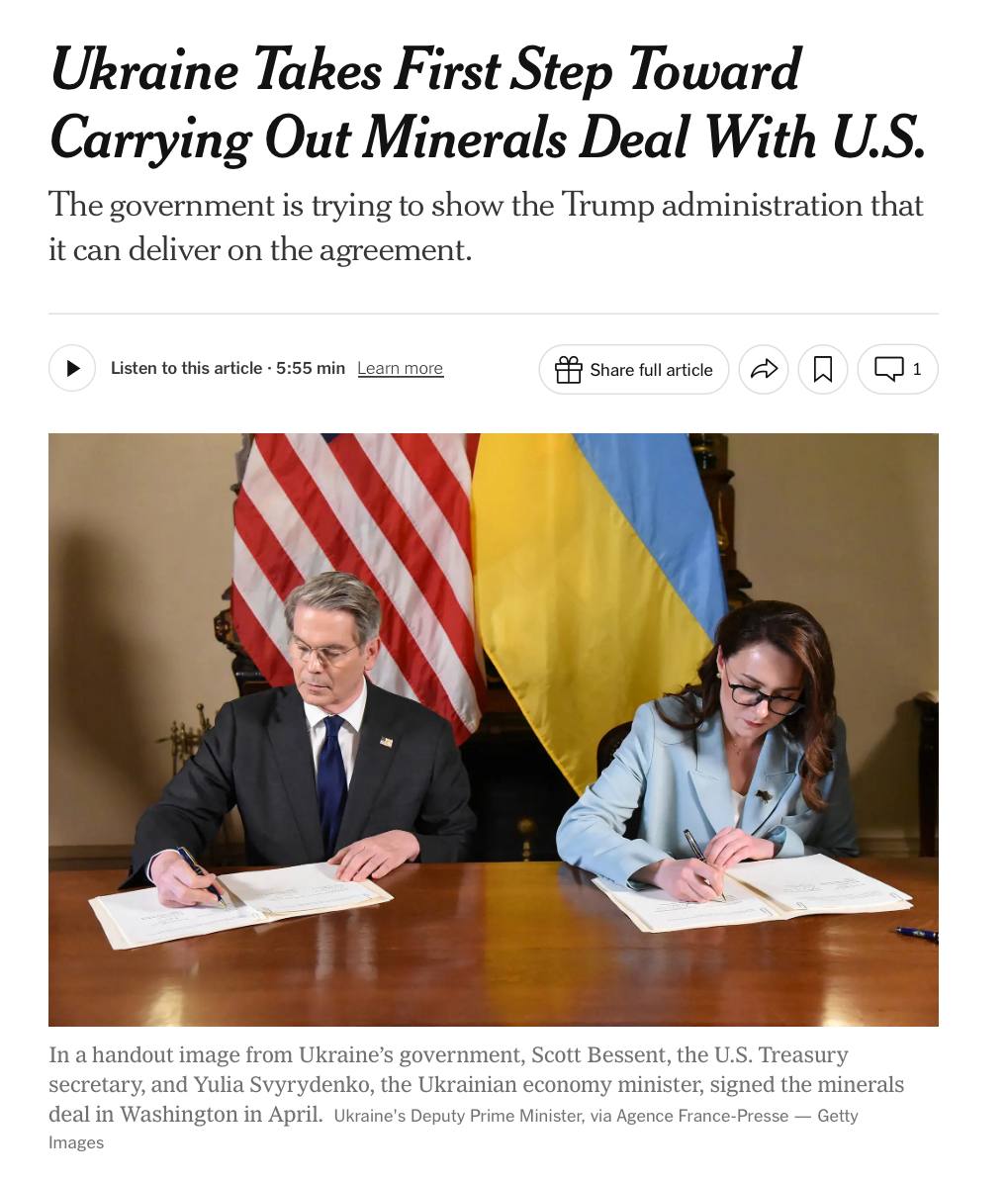 Зазначається, що це перший реальний крок у рамках нещодавньої угоди зі США, згідно з якою половина доходів від видобутку корисних копалин надходитиме до спільного американсько-українського фонду.