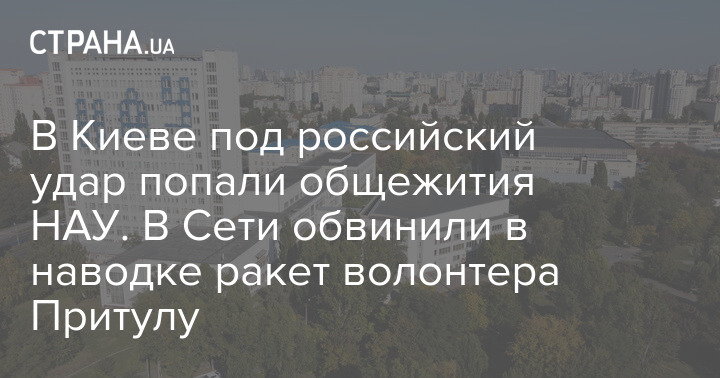 У Києві під російський удар потрапили гуртожитки НАУ. У Мережі звинуватили у наведенні ракет волонтера Притулу