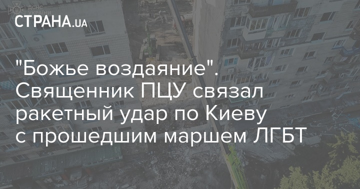На своїй сторінці у Фейсбуці під фотографією зруйнованого ракетою будинку в Солом'янському районі священик написав: "Ось вам і марш "рівності"... Божа відплата - вона така".
