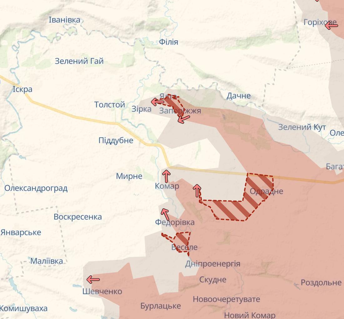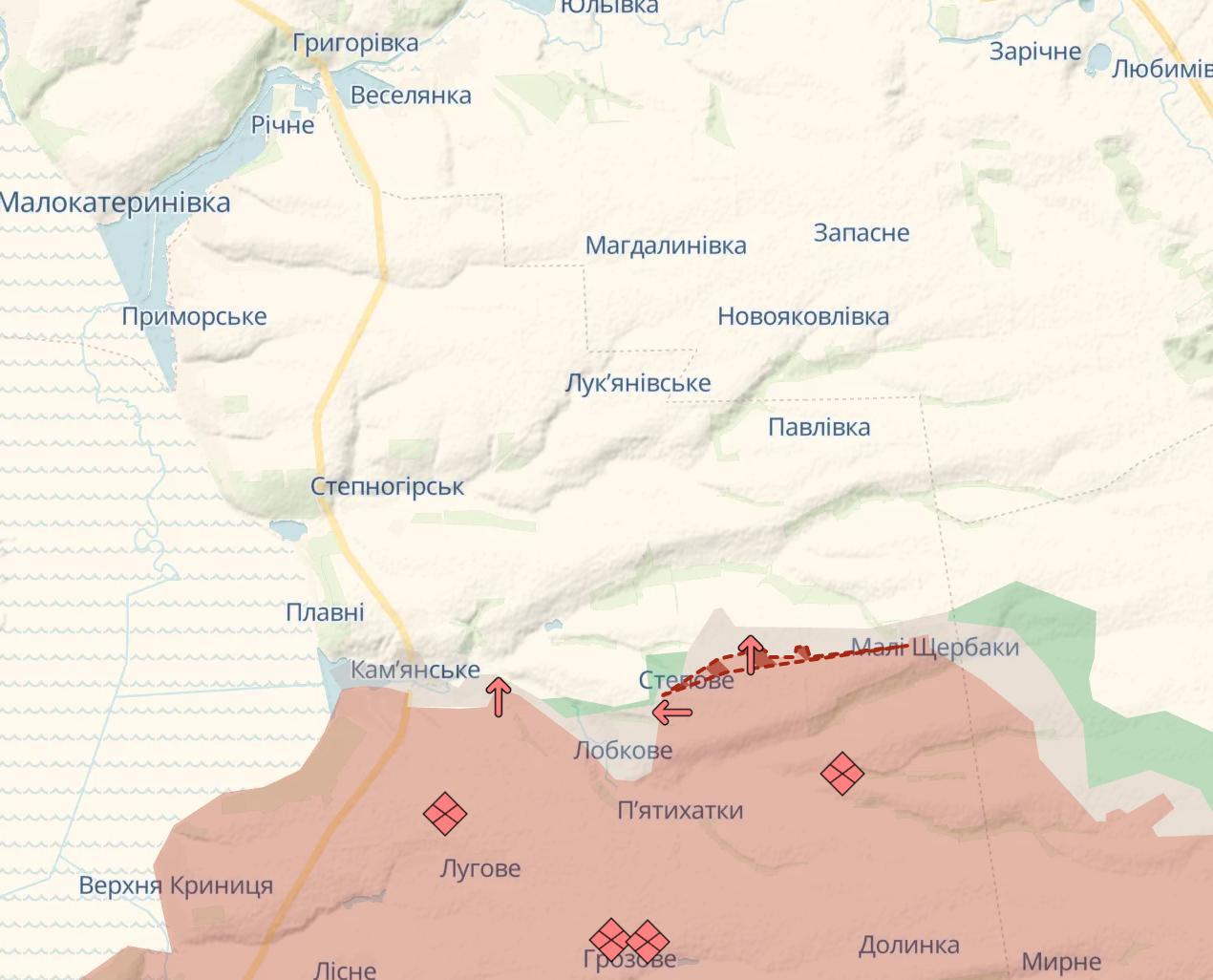 Також РФ знову просунулась у районі Кам'янського – це найкоротший напрямок до міста Запоріжжя.