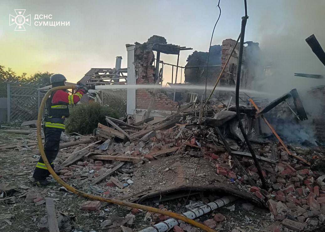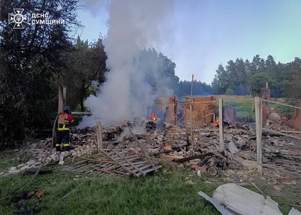 На Сумщині рятувальники ДСНС ліквідували масштабну пожежу після ворожого удару. Внаслідок атаки РФ за Бітіцьким старостатом сталося займання двох приватних домоволодінь.