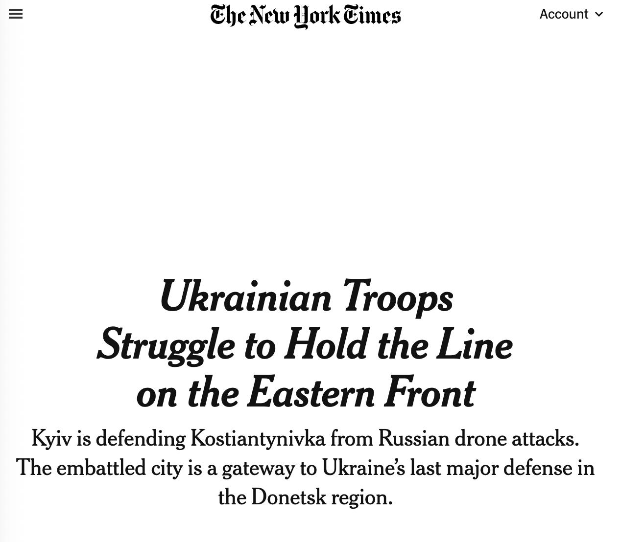 "Місто є південною брамою в ланцюг міст, які утворюють останній великий оборонний пояс України в Донецькій області. Якщо він паде, майже всі міста далі на північ потраплять у зону дії російських безпілотників. Це наблизить Москву до її довгоочікуваної мети - захоплення всього Донбасу", - пише видання.