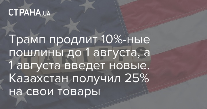 Трамп продовжить 10% мита до 1 серпня, а 1 серпня введе нові. Казахстан отримав 25% на свої товари