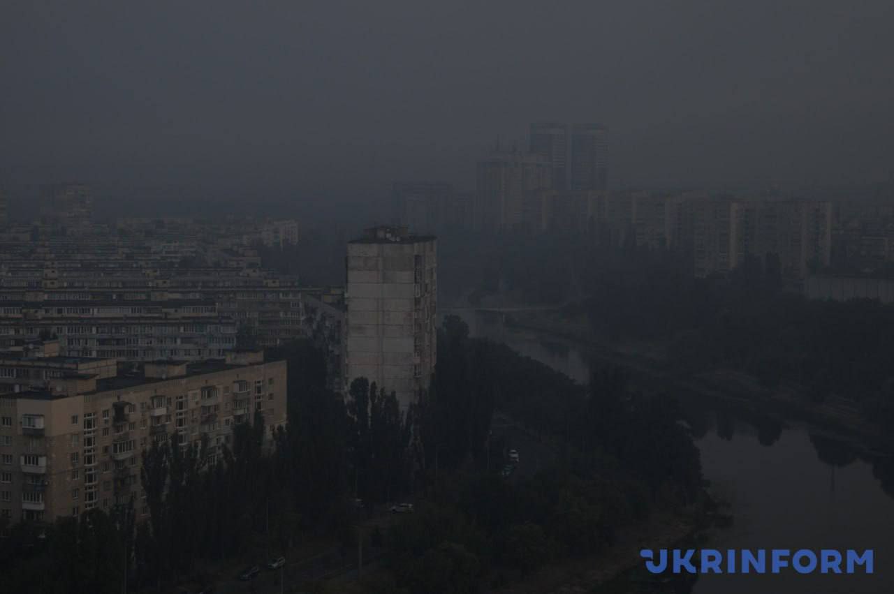 7.36 Після нічних прильотів небо над Києвом затягнуло димом.