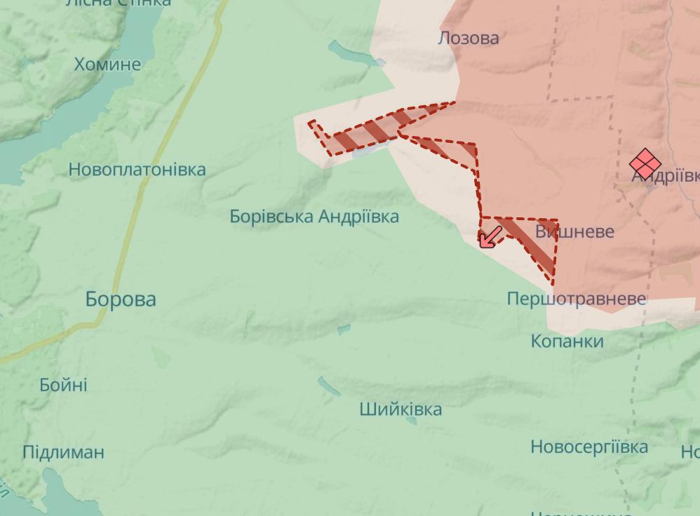 Також у росіян просування приблизно на чотири кілометри у напрямку Борової Харківської області з північного сходу. До міста залишилося понад вісім кілометрів.