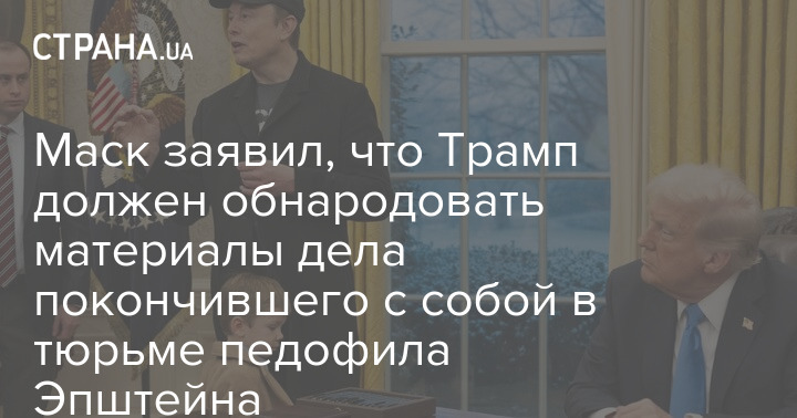 Американський мільярдер і колишній чиновник Білого дому Ілон Маск заявив, що президент США Дональд Трамп повинен опублікувати файли фінансиста Джеффрі Епштейна, який наклав на себе руки у в'язниці, якого підозрювали в організації секс-вечірок для світової еліти, як і обіцяв.