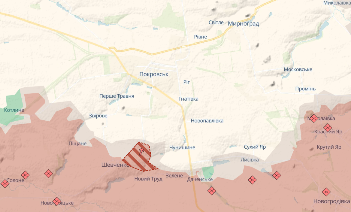 Раніше ми повідомляли, що російська армія захопила два села. Одна з них Зірка – на кордоні з Дніпропетровською областю, а також Білогорівка у Луганській. Також великий наступ РФ зафіксовано і на північний схід від Покровська і Мирнограда (по лінії Новоторецьке - Новоекономічне). Там ворог, ймовірно, робить спроби вийти на північ від Покровська.