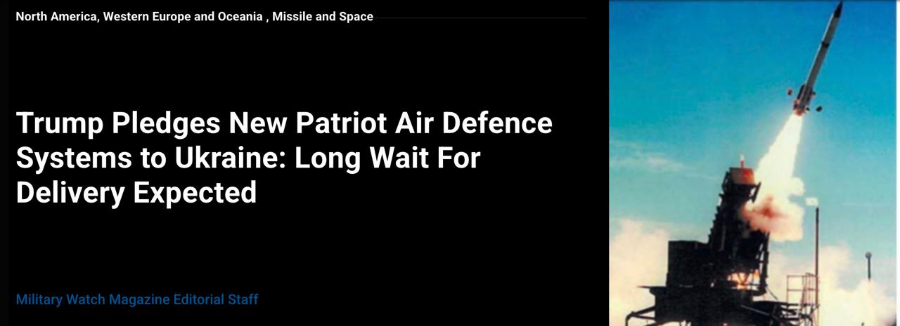 Тим часом, як пише портал Military Watch Magazine, масові постачання Україні систем Patriot і ракет до них "у найближчому майбутньому не відбудуться".