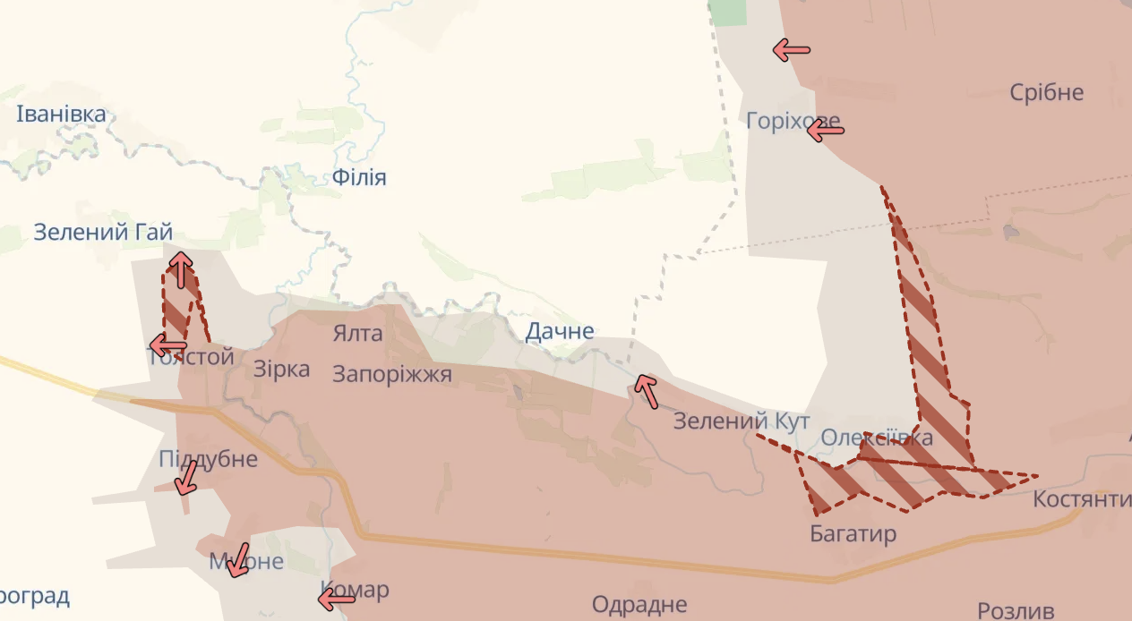 Ближче до кордонів Дніпропетровської області поступ у РФ є в Новохацькому та Толстому.