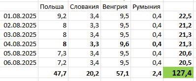 При цьому імпорт з Румунії через ГІС "Орлівка" був невеликим порівняно з поставками з Угорщини, Польщі та Словаччини (див. таблицю з імпорту за перші 6 днів серпня).