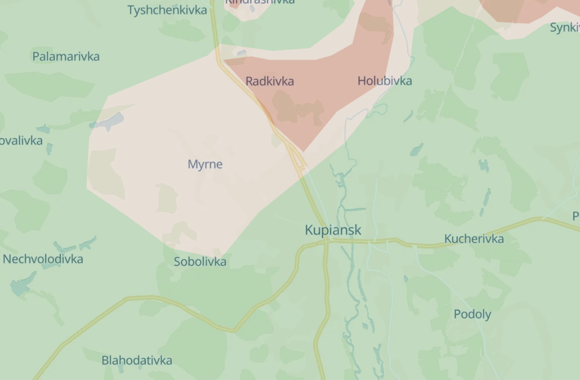 Україна цього не підтверджувала. На карті Deep State північно-західна околиця міста вже знаходиться в сірій зоні. Тобто там ідуть бої. Також ведуться бої на захід від Куп'янська, де село Мирне, частину якого раніше відбили ЗСУ, тепер перейшло знову у "сіру зону".