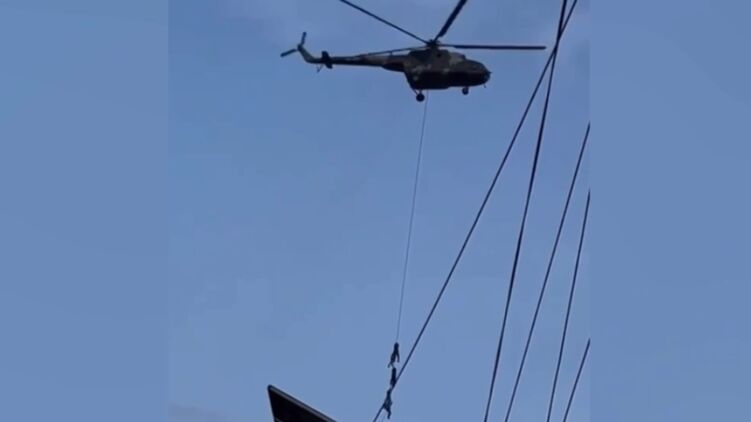 Представників влади евакуювали за допомогою троса, прикріпленого до гелікоптера. Скріншот відео
