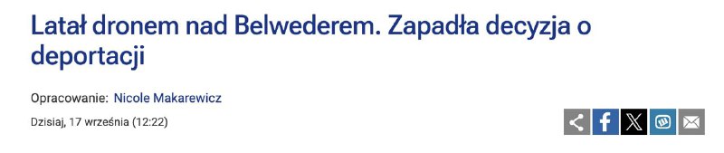 Влада Польщі депортує 21-річного громадянина України, який запустив безпілотник над палацом Бельведер у Варшаві - однією з резиденцій президента країни. На батьківщині його поки що не призовуть до армії, оскільки він не досяг 25-річного віку.