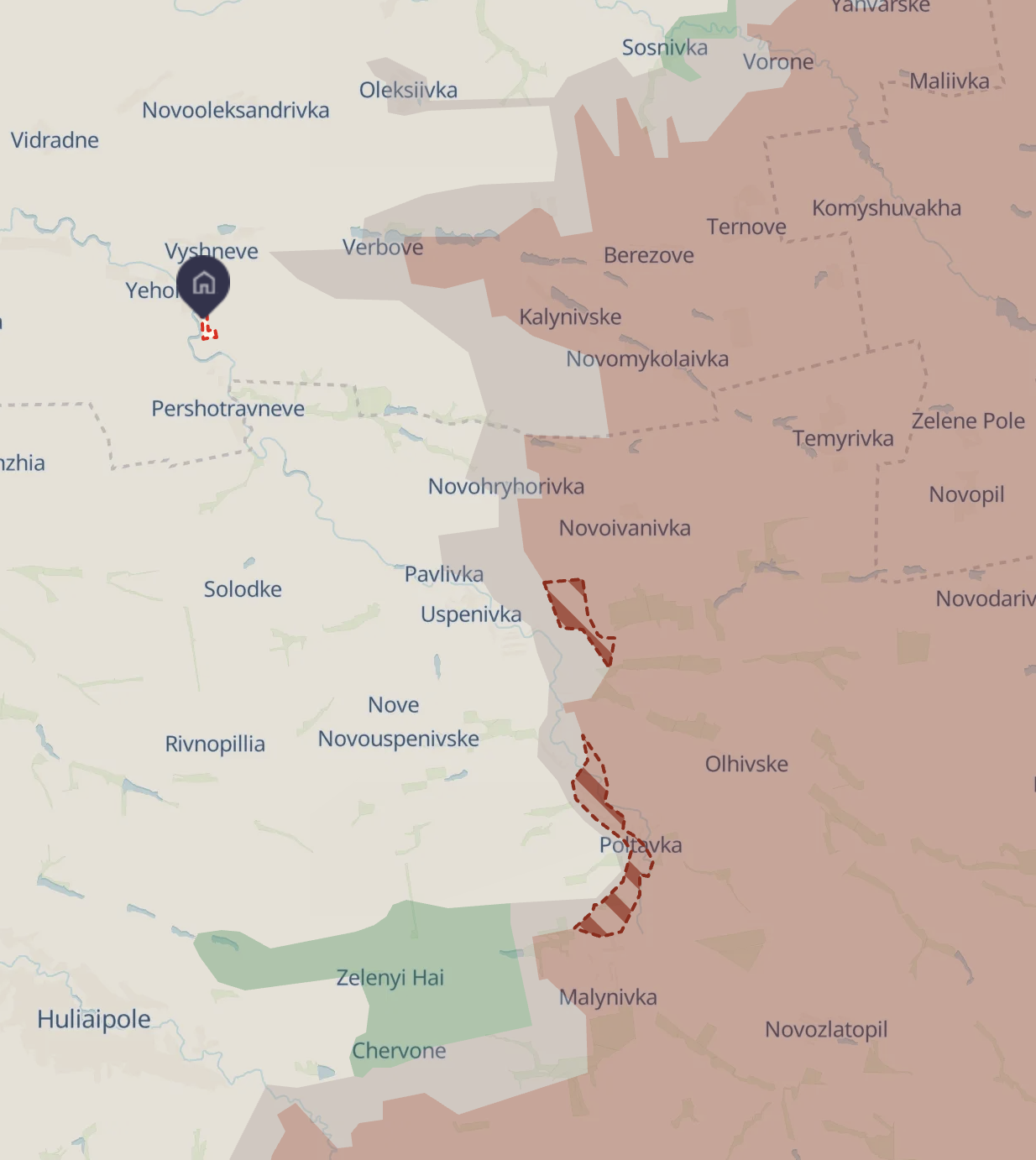 Армія РФ просунулась на трьох дільницях на заході Запорізької області, повідомляє Deep State. А саме – біля Новоіванівки, Малинівки та у Полтавці.