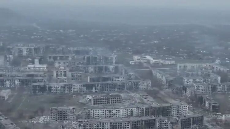На відео можна помітити, що всі висотні будинки міста, що знаходяться в полі зору, стоять із вибитими віконними рамами та слідами пожеж. У багатьох обвалено перекриття та пробиті дахи.